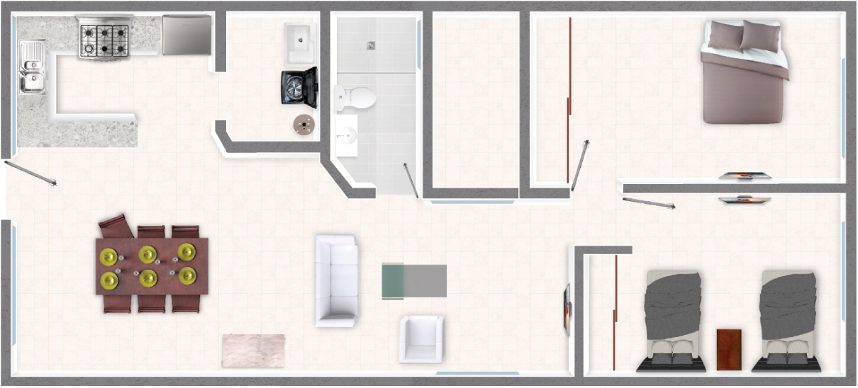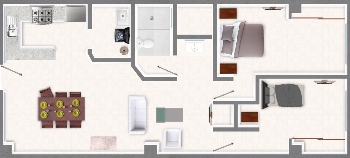Renta incluye cocina equipada, sala, comedor, camas y TV.