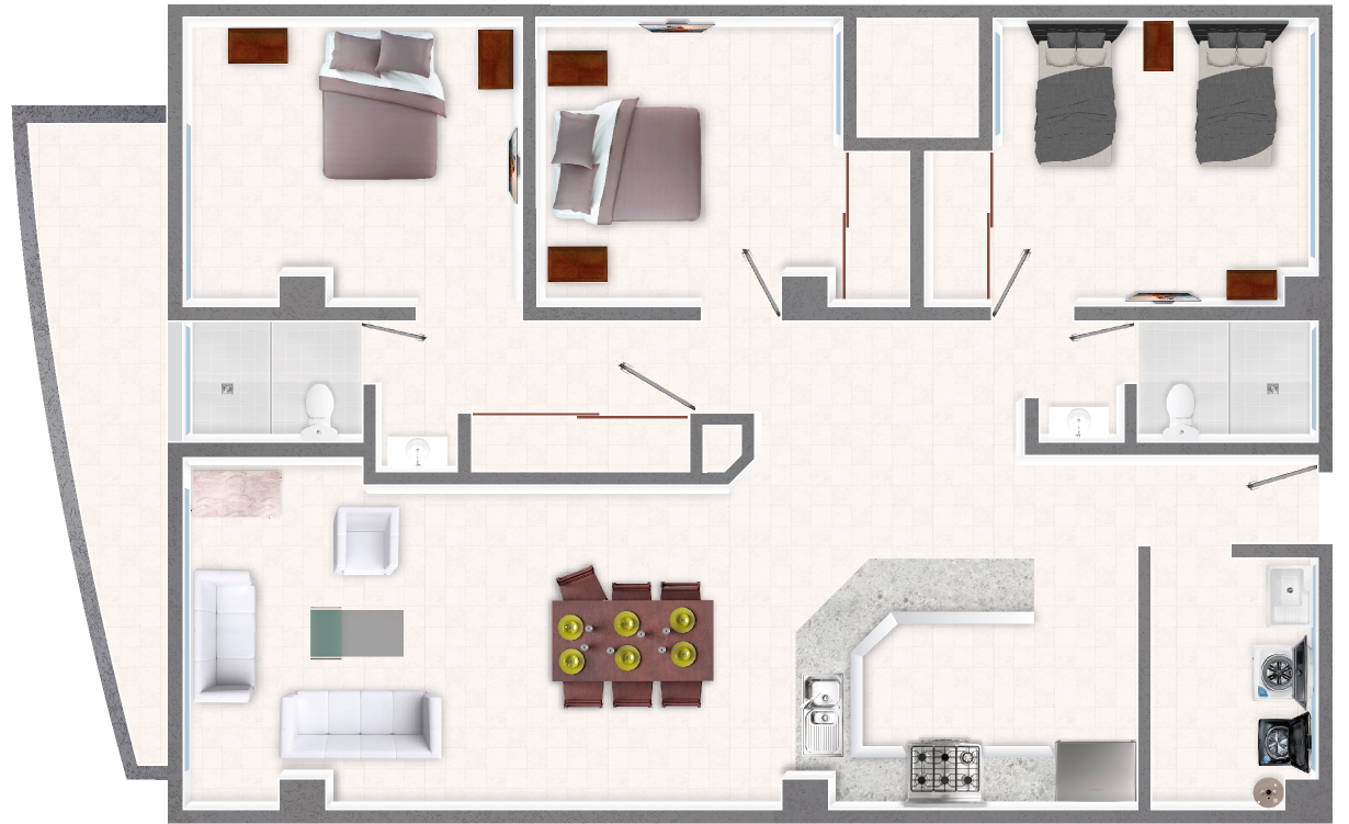 Todas las unidades cuentan con aire acondicionado, área de lavado integrada, acabados de lujo y seguridad las 24 horas.